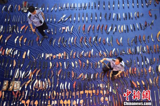 “我们委托了有资质的再生资源公司负责此次销毁,刀具的销毁主要通过燃气高温切割的方式进行物理破坏,先将刀身和刀把切割分离,刀具的外包装用粉碎机现场破坏,再将刀身切割成几段的小铁片,切割后再放入钢厂炼钢炉融化。”吴晓波说。