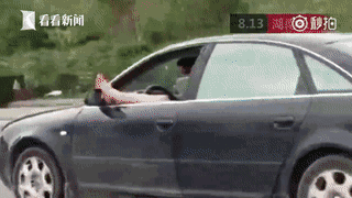 视频中,这台黑色奥迪A6小车上的男性驾驶员神情淡定,十分悠闲地驾驶着车辆在最右侧车道上奔跑。