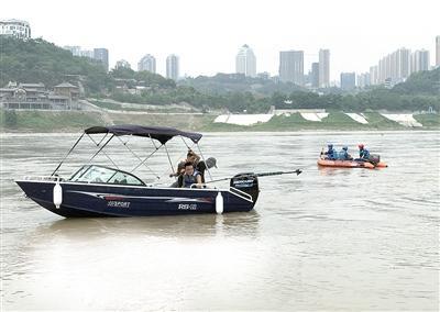 昨天中午12点左右,主城气温已经超过35 ,沙坪坝区应急救援协会会长罗钢举着对讲机正在和江面上驾驶快艇的救援队员沟通。而在快艇后方,一名队员将绑着水下运动录像机的长棍插入水中,记录着水下的图像。