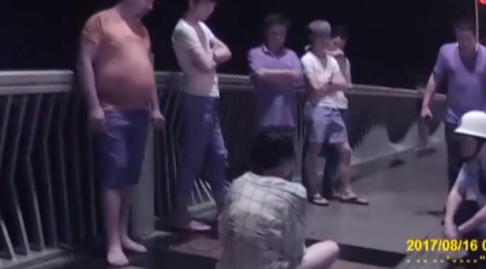 “你上去,我给你3秒钟,你不上去我真跳了,你上去。”“好好好”“你真不上去,是不是?”“我上去上去。”