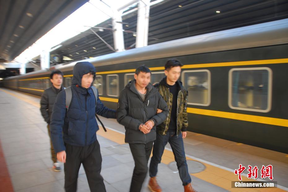 2月下旬,2018年春运进入尾声。北京铁路公安处刑警支队在春运期间,由老中青33名侦查员组成的一支特别反扒行动队在北京各大车站执行任务。截止目前,他们已破获各类扒窃案件21起,抓获扒手19名,追回被盗财物价值10万余元。图为扒窃嫌疑人落网。中新社发李鹏摄
