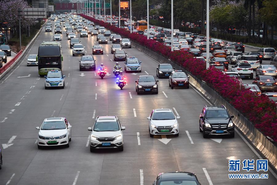 3月7日,女铁骑在深圳滨河大道上巡逻执勤。
