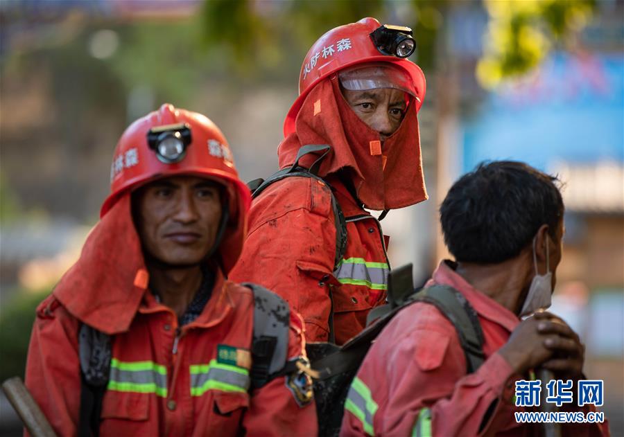 3月31日,几名刚从火灾现场撤下来的扑火队员在休整。 3月30日,四川凉山州西昌市突发森林火灾。截至3月31日16时,火灾过火面积1000余公顷,毁坏面积80余公顷,已造成19人遇难。目前,西昌森林火灾的扑火救援工作仍在紧张有序地进行。新华社记者江宏景摄