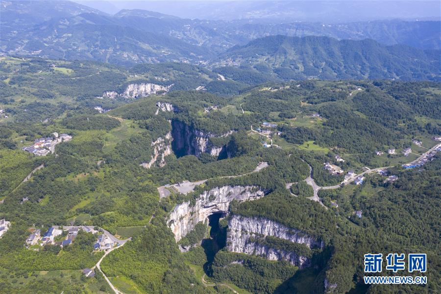这是7月29日拍摄的天生三桥景区(无人机照片)。新华社记者刘潺摄