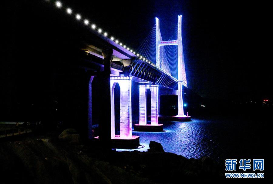 这是8月24日拍摄的平潭海峡公铁大桥夜景灯光调试。近日,作为福(州)平(潭)铁路的关键性工程,平潭海峡公铁大桥正在进行静态荷载试验。与此同时,施工者在铁路全线紧张地进行着“精调作业”,为下个月的铁路联调联试做准备。据了解,福平铁路计划于今年底开通运营。福平铁路是京福高铁的重要延伸段,线路全长约88公里,设计时速200公里。新华社记者林善传摄