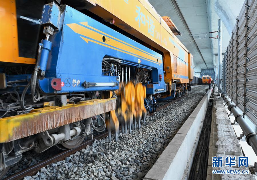 8月25日,大型养路机械在平潭海峡公铁大桥桥面上施工作业。近日,作为福(州)平(潭)铁路的关键性工程,平潭海峡公铁大桥正在进行静态荷载试验。与此同时,施工者在铁路全线紧张地进行着“精调作业”,为下个月的铁路联调联试做准备。据了解,福平铁路计划于今年底开通运营。福平铁路是京福高铁的重要延伸段,线路全长约88公里,设计时速200公里。新华社记者林善传摄