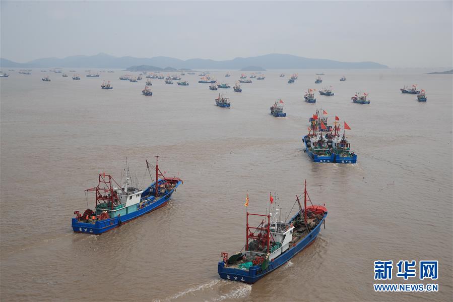 9月16日中午,渔船驶出浙江象山石浦渔港,奔赴东海。 9月16日12时起,中国东海结束为期四个半月的伏季休渔,全面开渔。新华社发(张培坚摄)