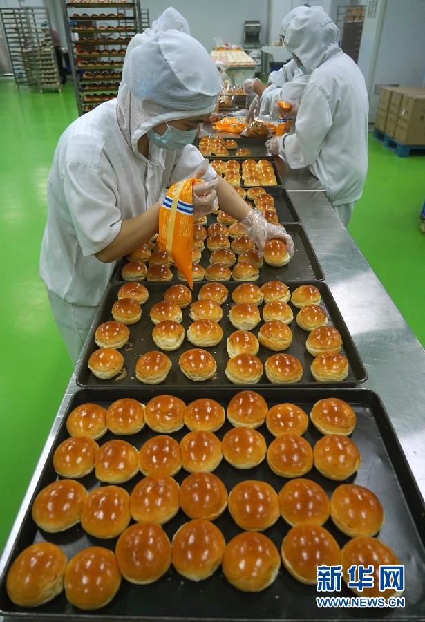 资溪县面包食品产业城内一家面包企业的工人在制作面包(11月11日摄)。