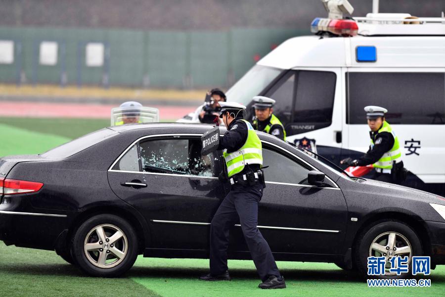 11月17日,在济南市公安局济南特警支队训练场,干警进行重点交通违法行为智慧查缉展示。新华社记者郭绪雷摄